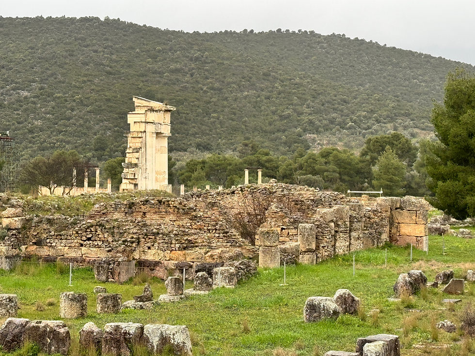 From Nafplio we drove on a rainy morning a short distance into the surrounding hills to Epidavargos. This ancient site was a a combination of a hospital and restorative heath spa for the Romans dedicated to the God of medicine Asclepius.